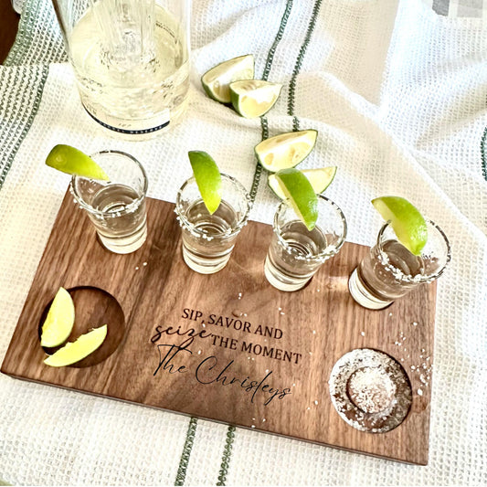 Double-Sided Mini Cutting Board and Tequila Flight Board Set