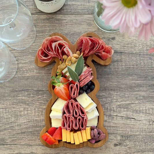 Spring Easter Bunny-Shaped Wooden Charcuterie Board