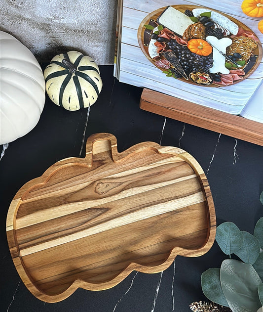Pumpkin Shaped Serving Tray - Versatile Hardwood Cutting Board and Charcuterie Board