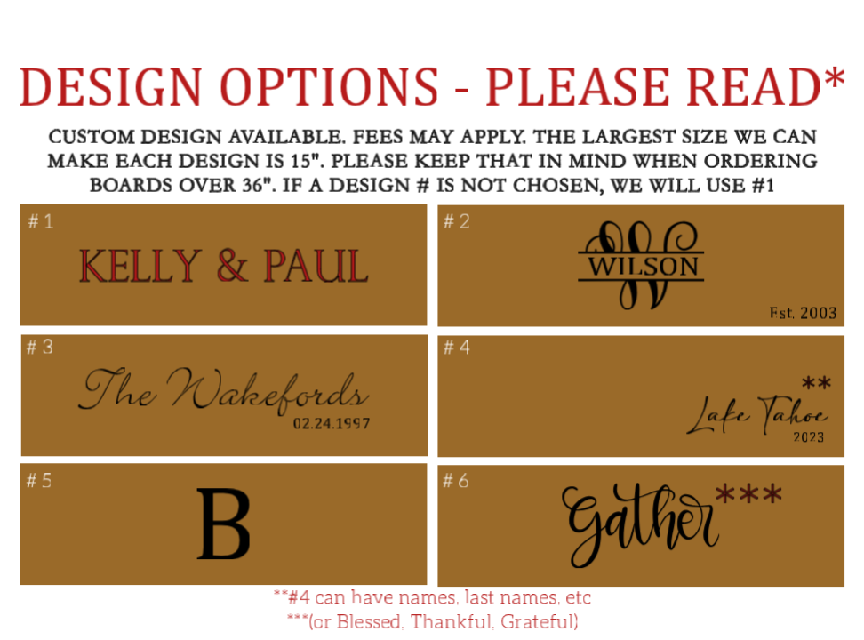 Personalized Wooden Charcuterie Board 9"x36"